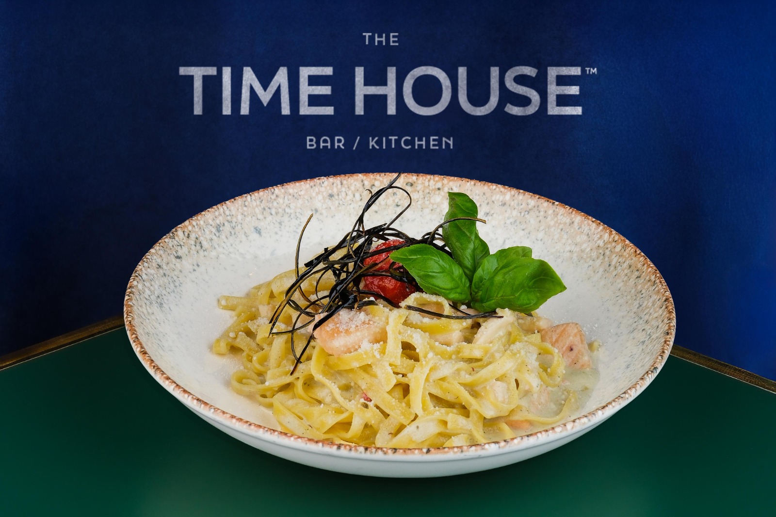 Tagletellı makarna, Deniz ürünleri salatası, Sarımsak, Beyaz Şarap, Krema, Parmesan.