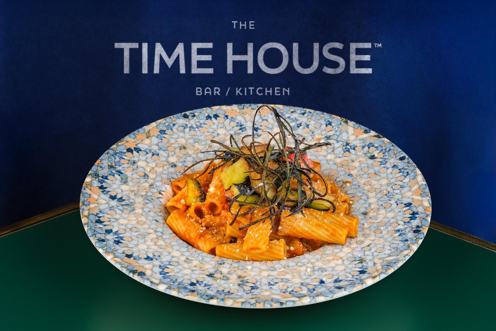 Rigatoni makarna, Patlıcan, Parmesan, Sarımsak, Zeytin, Domates.