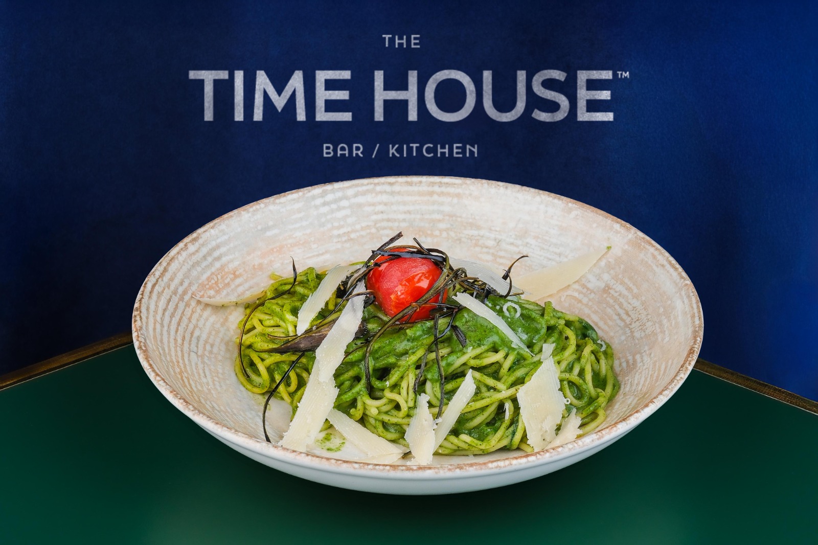 Spagetti makarna, Chimichuri, Pesto sos, Ispanak, Parmesan.