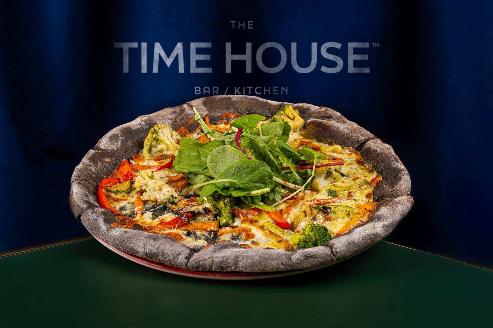 Black Pizza Hamuru 300gr, Közlenmiş sebzeler, Pesto soslu cream sos, Mısır, Domates, Brokoli, Karnabahar, Acılı yağ, Roka .